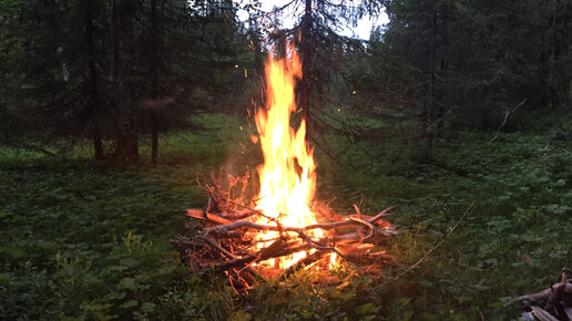 Горящий костер,тайга, белые ночи....и немного комаров)