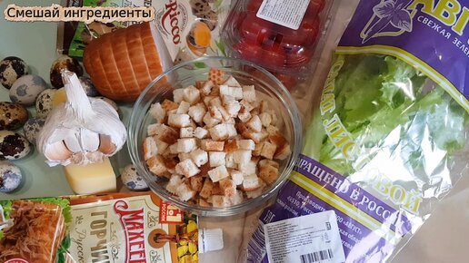 Салат ЦЕЗАРЬ с куриной ветчиной. Самый ПРОСТОЙ, БЫСТРЫЙ и ВКУСНЫЙ рецепт. Очень вкусный рецепт!
