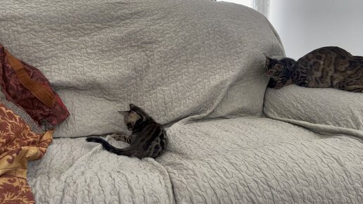 1,5 месяца бенгальские котята. Мама учит охотиться и они хорошо усваивают уроки!