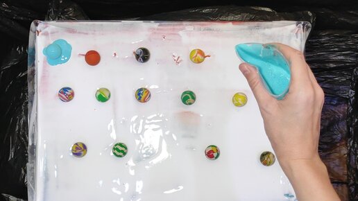 Рисую картину с помощью множества маленьких мячиков. В бирюзово- сине- золотых тонах.