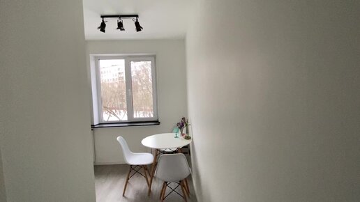 Маленькая кухня с каменной столешницей, переходящей в подоконник