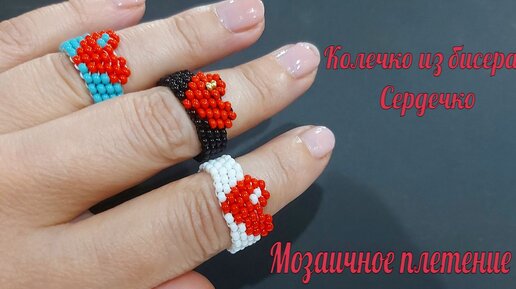 Кольцо из бисера СЕРДЕЧКО в технике мозаичное плетение