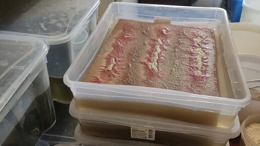 Сбор аулофоруса с больших контейнеров и чистка губки