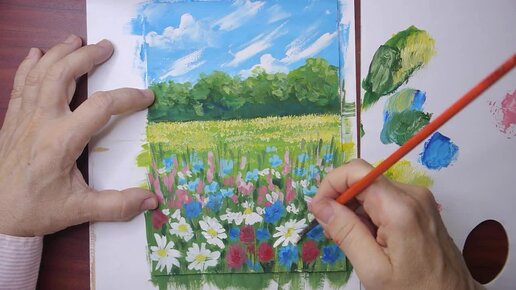 Полевые цветочки//рисуем гуашью