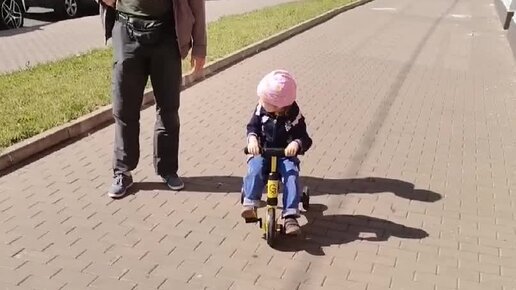 Почти 3г. Дочь осваивает 3-х колёсный велосипед 🤗
