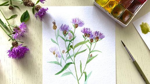 Рисуем Василёк луговой акварелью. Рисование онлайн для начинающих