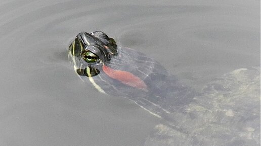 Биосфера. Красноухая черепаха плавает среди зарослей на реке Везёлка, как в Северной Америке.