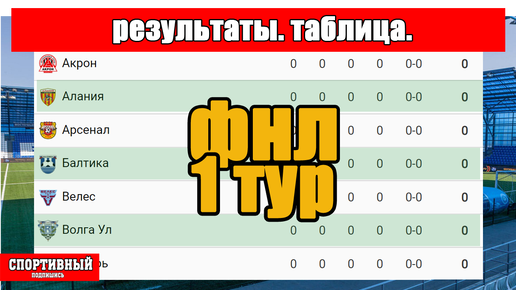 Футбол России. ФНЛ. 1 тур. Результаты. Таблица. Расписание.