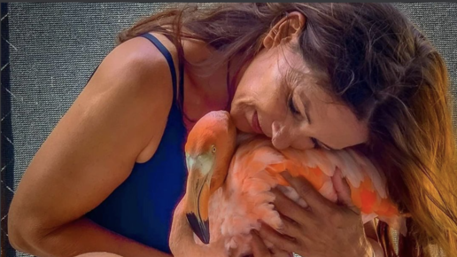 Девушка Элли спасает фламинго