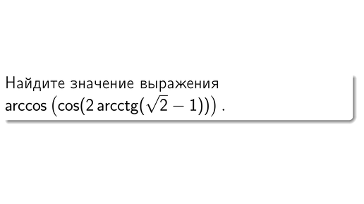Обратные тригонометрические функции. # 2 Найдите значение выражения arccos ( cos (2 arcctg (sqrt{2}-1)))