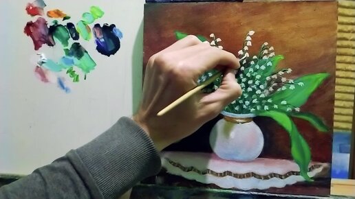 Как рисовать ландыши в вазе поэтапно|видео с комментариями