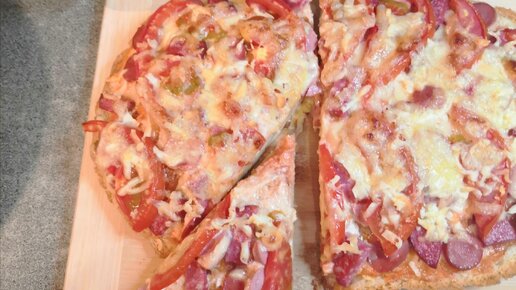 Пицца на толстом лаваше: берём все что любим, выкладываем, натираем 2 вида сыра и запекаем, проще не бывает