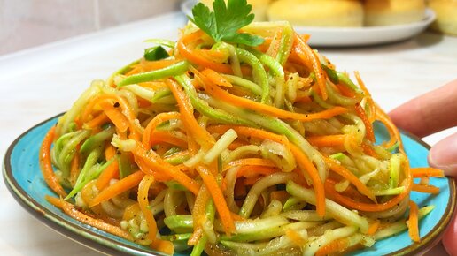 Салат из кабачка и моркови. Получается очень вкусно.