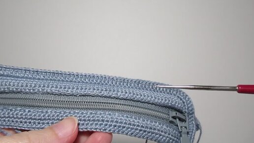 На застежке "молния" начинает появляться сумка. Творческий эксперимент. Так сумку еще не вязала