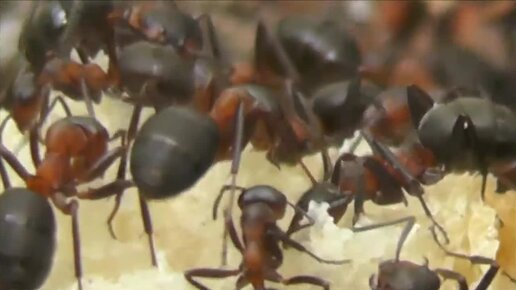 Муравейник.Муравьи делят кусочек хлеба.Ants share a piece of bread.Ameisen teile