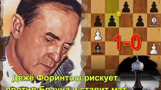 Дёжё Форинтош белыми проводит динамичную и рискованную игру против Уолтера Брауна в Скопье, 1970 - мат неизбежен и прост