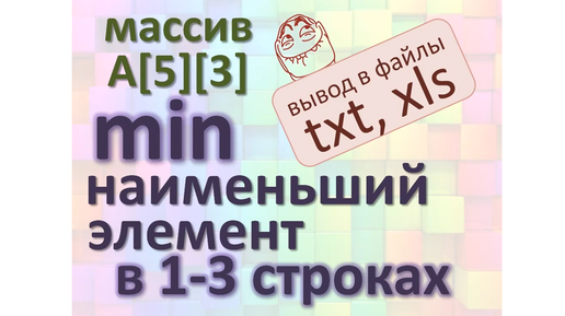 #12 Блок-схема С++ Mathcad Двумерный массив A[5][3], найти min минимальный элемент первых трех строк, сделать вывод в файлы txt xls