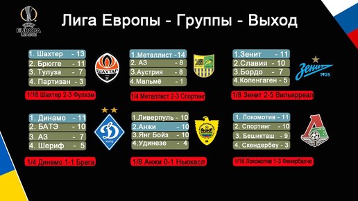 Сравним выходы из групп Лиги Европы (Украина - Россия)