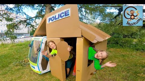 Диана и Даня строят Домик из Картона для Полицейской машины. Манкиту