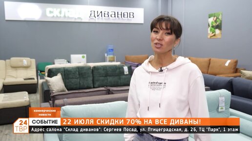 22 июля в салоне «Склад диванов» скидки 70% на все диваны