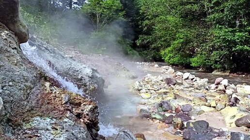 Вулканическая активность на острове Кунашир. Кипящие озёра, горы серы и горячие источники