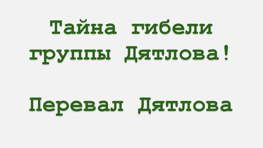 ТАЙНА ГИБЕЛИ ГРУППЫ ДЯТЛОВА! ПЕРЕВАЛ ДЯТЛОВА
