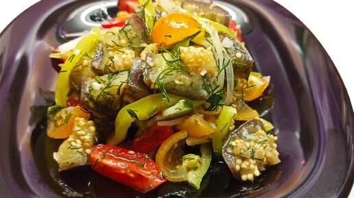Летний салат с маринованными баклажанамии