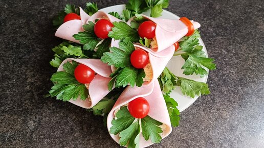 ВКУСНЕЙШАЯ ЗАКУСКА ЗА 5 МИНУТ. Рулетики с ветчиной и сыром. Быстрая закуска на праздничный стол.