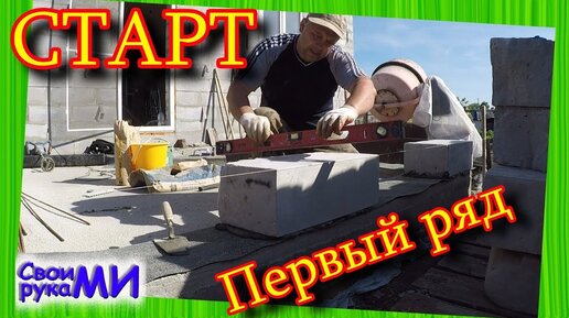 Ложим-Кладём первый ряд ПЕНОБЛОКА. Строю подешману.