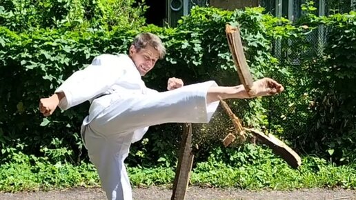 Супер шоу. Ломаю сухие доски руками и ногами на костер.
