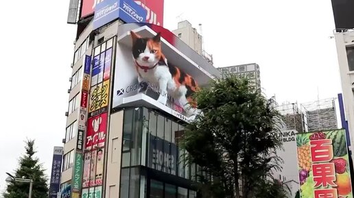 В Японии на торговом центре появился огромный суперреалистичный 3D-кот.