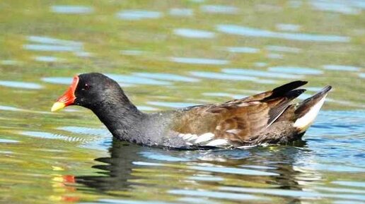 Впервые увидела у нас водяных курочек или камышниц. Чистят перышки. Близко не подплывают...