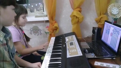 Обучение игре на фортепиано. Результат первого занятия - игра двумя руками наизусть.