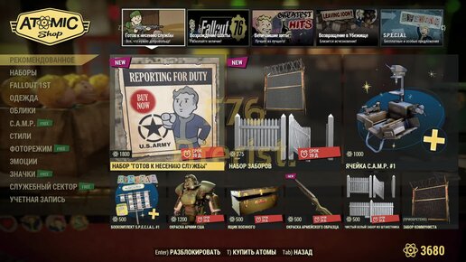Атомная лавка Июль 19 - Июль 26 Fallout 76