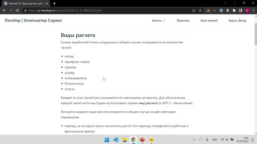 (Видео) 1С программирование. Виды расчета, начисление, вытеснение и перерасчет. Занятие 22 Продвинутый курс