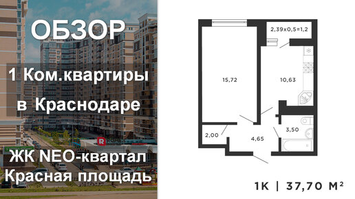 Обзор 1 Комнатной квартиры в Краснодаре (37,7 м2) в новостройке от застройщика. ЖК NE0 квартал Красная площадь