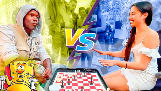 Красотка мастерица против шахматиста любителя. Шоу матч. Шахматы