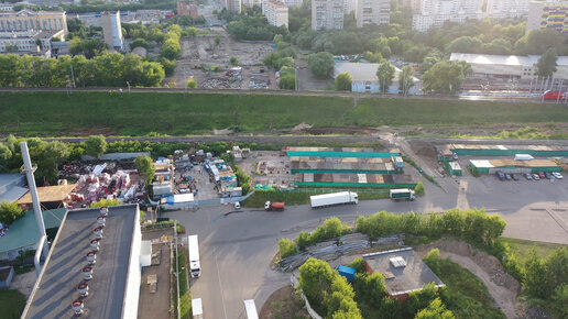 Вид с квадрокоптера на ход работ по строительству дороги между районами Отрадное и Восточное Дегунино