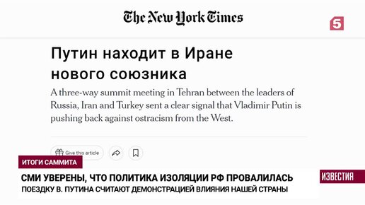 Международная реакция на встречу Путина с лидерами Турции и Ирана в Тегеране