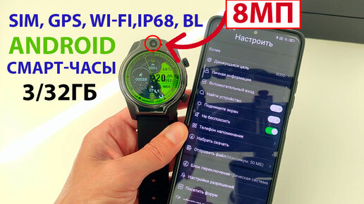 ⌚ Смарт-часы ROLLME S08 С ВОЗМОЖНОСТЯМИ СМАРТФОНА | Nano SIM, 4G, GPS, Wi-Fi, Android, IP68, BL, 8МП