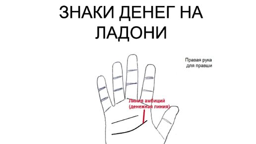 Знаки денег на ладони. Линия амбиций / просвет между пальцами / размер мизинца / денежный браслет