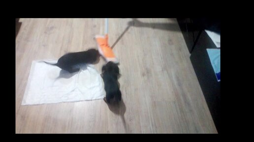 Таксята охотятся на швабру