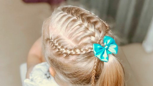 Высокий хвост украшенный свисающими косами _ Детские Новогодние прически