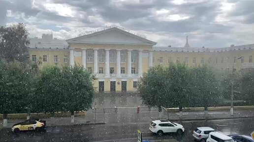 На центр Волгограда обрушился ливень с градом. Размер градин небольшой - до 5 мм в диаметре.