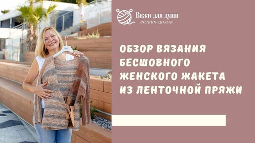Обзор вязания женского летнего бесшовного жакета из ленточной пряжи / Летний жакет спицами