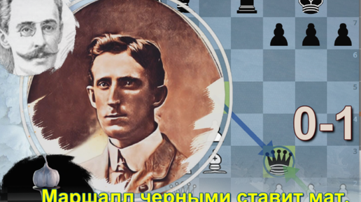 План Фрэнка Маршалла: отдать своего черного ферзя Давиду Яновскому и поставить мат в русской партии (Биариц, Франция, 1912, 0-1)