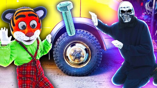 МОНСТР ПРОКОЛОЛ КОЛЕСО спортивного автомобиля ГВОЗДЕМ ПРОТИВ мистера По на автомобиле Газель - видео для детей, мультики