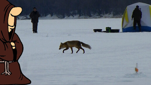 Лиса гуляет среди жерлиц и рыбаков Рыбалка в Марте Щука на жерлицы на реке Сок Самарская область