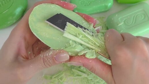 ASMR Soap Cutting 💚💚💚 Green soap Carving. Резка сухого мыла. No Talking. Rela