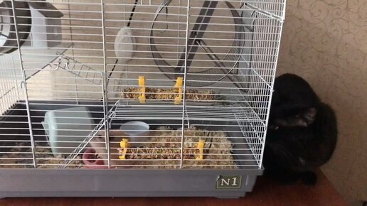 Сэм проверяет работу - как почистили клетку Лайка! #котофей #безкотаижизньнета #домашниеживотные #черныйкот #сэм #кот #хомяк